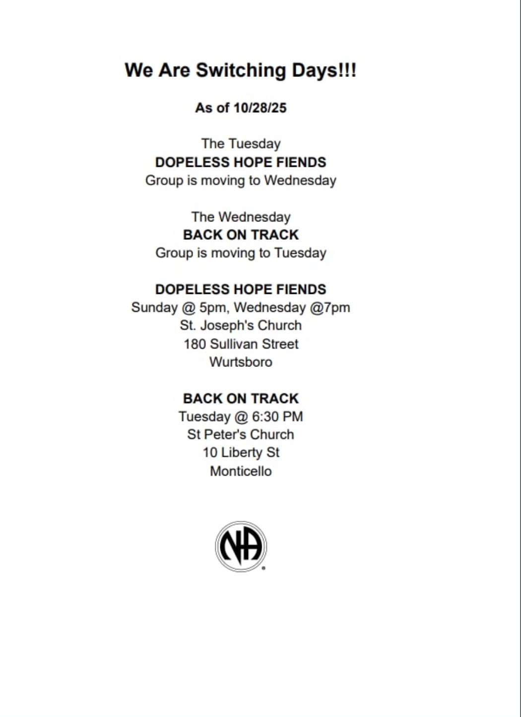 1953 and meetings began here in the Hudson Valley in the early 1980s. All meetings are open to anyone seeking freedom from active addiction.